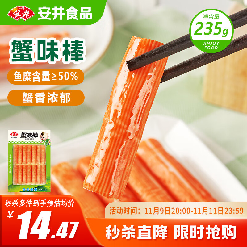 包邮 安井 蟹味棒 235g 1包 鱼糜含量50% 火锅烧烤关东煮麻辣烫食材